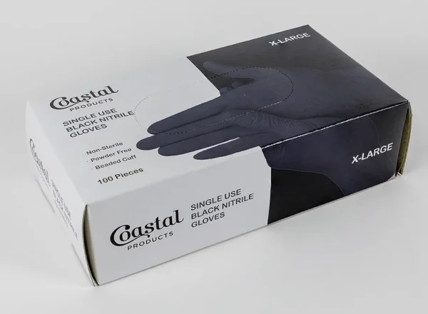COASTAL BLACK NITRILE GLOVES LARGE 100 PIECE